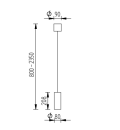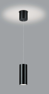Zylindrische Pendelleuchte mit unsichtbarer Höhenverstellung 75-230cm. Ober und Unterlicht separat über Gestensteuerungen dimmbar.